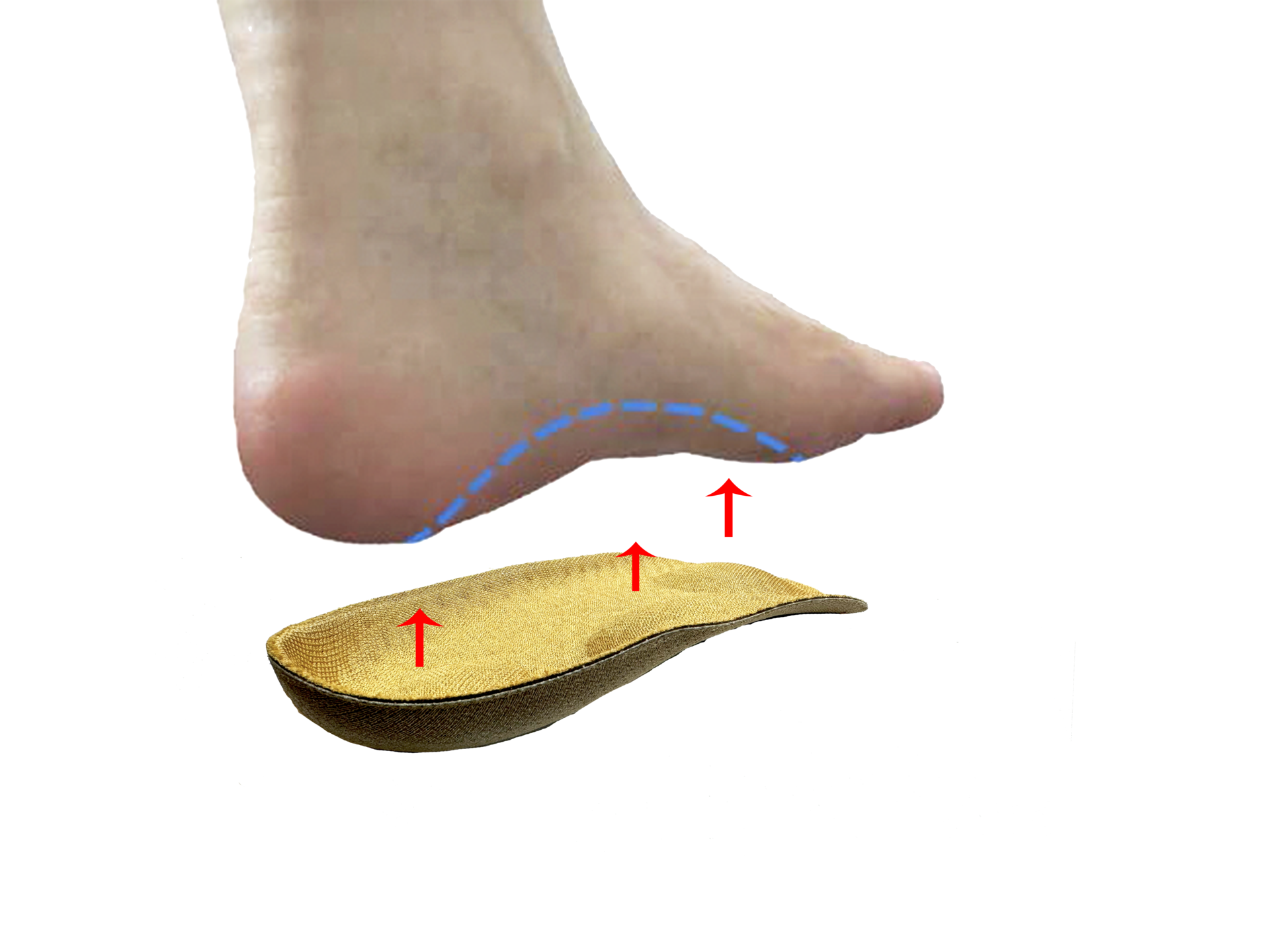 本發明以『專業性 』材料科學、人體工學與人體力學之設計,將人類足部骨骼及關節所行成角度歸位『標準性』,以符合人體工學與人體力學受力面與支撐點,進而有效改善錯位與變形之足部骨骼排列,讓人類雙腳回歸到足弓角度之標準『契合面』與『復位』狀態,並有助於肢體環節自然歸位進而強化上下肢肌肉之肌力與協調性。