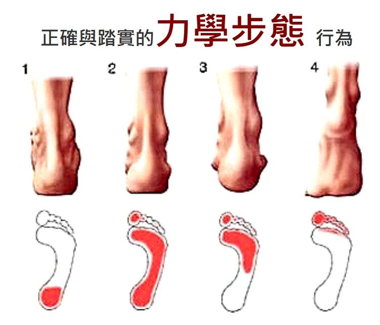 即從足弓、足踝、膝關節、骨盆及髖關節到脊椎,