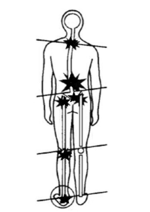 重心線與平衡上分布不均而可能衍生之人體力學症狀